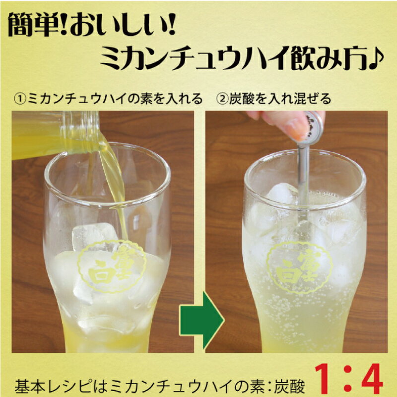 商品詳細 名称: 冨士白ミカンチュウハイの素 内容量: ミカンチュウハイの素 600ml×2 アルコール度数:25度 配送温度帯: 常温 提供 道の駅すさみ ☆