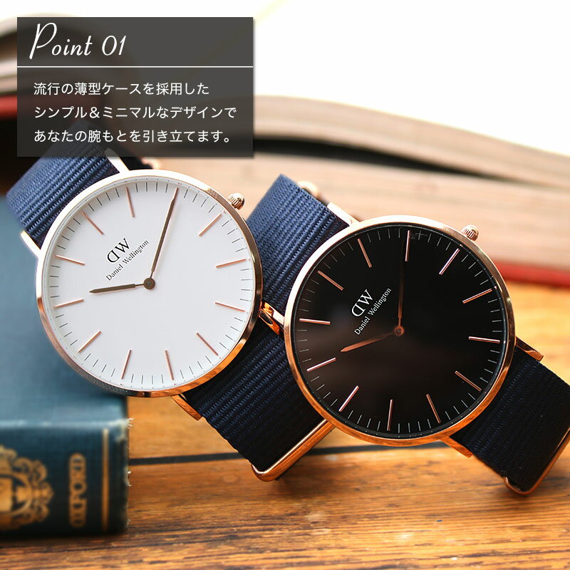 ダニエルウェリントン 腕時計 DanielWellington 時計 クラシック 40mm ダニエル ウェリントン Daniel Wellington メンズ レディース 男性 女性 向け プレゼント ギフト おすすめ ナイロンベルト ローズゴールド ピンクゴールド 人気 ブランド 薄型 シンプル 北欧 おしゃれ