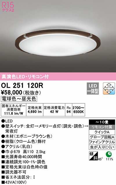 【最安値挑戦中!最大25倍】オーデリック OL251120R シーリングライト 10畳 調光 調色 リモコン付属 LED一体型 電球色〜昼光色 エボニーブラウン