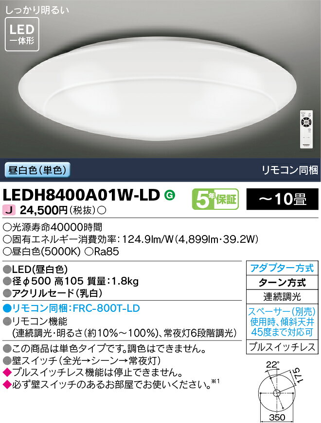 β東芝 照明器具【LEDH8400A01W-LD】LEDシーリングライト 単色・連続調光 〜10畳 リモコン同梱 {J2}
