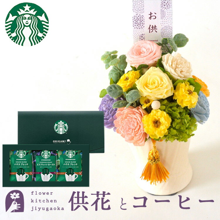 お供えプリザーブドフラワー「メモリアルペール」+スターバックスコーヒーギフトセット 【送料無料】枯れない花 お盆 お供え お悔やみ 仏事 法事 命日 一周忌 法要 新盆 初盆 お彼岸 FKTPOSW
