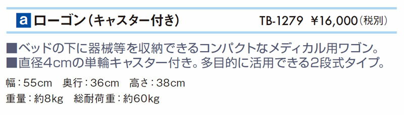 TB-1279 ローゴン(キャスター付き) ベッドの下に器械等を収納できるコンパクトなメディカル用ワゴン。