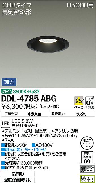 照明 おしゃれ かわいい 屋内大光電機 DAIKO 高天井用調光ダウンライトDDL-4785ABG 黒塗装 LED温白色 集光タイプ屋内・屋外兼用 白熱灯60W相当 埋込穴φ100mm 埋込深78mm