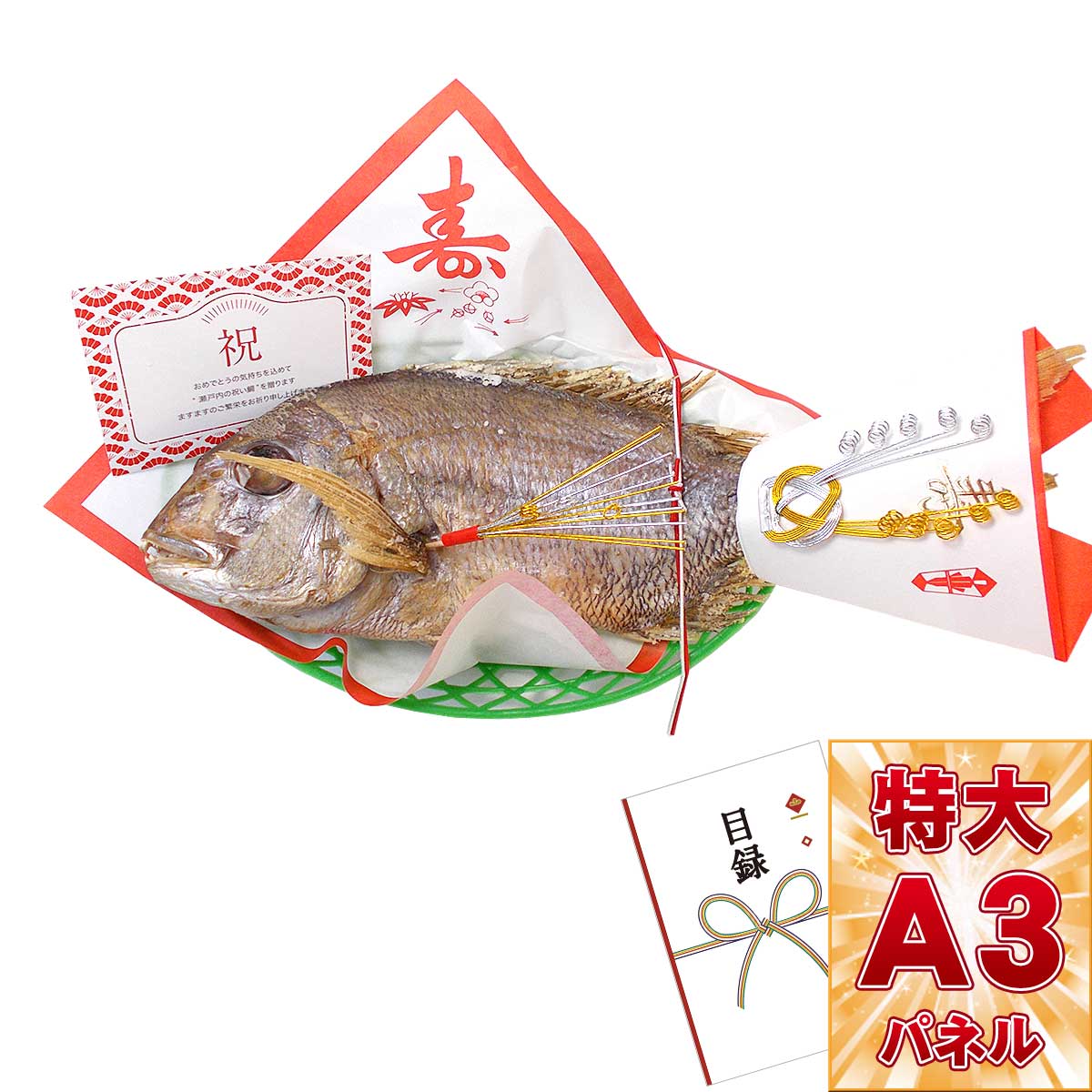目録 パネル ビンゴ 景品 【天然真鯛の姿焼き 御祝い飾り付】 A3パネル付き 目録 ビンゴ景品 結婚式 二次会 キャンペーン 販促 ゴルフ コンペ 景品 忘年会 新年会