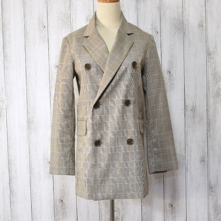 \30%オフSS開始限定★P10倍〜/ROSIEE ロージー ダブルジャケット 151634 レディース 【大】アウトレット 新古品 SDGs 新品 チェック柄 カジュアル向け ビジネス向け フリーサイズ ベージュ系