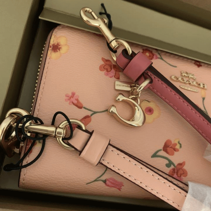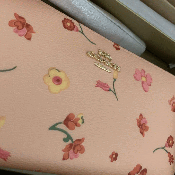 コーチ レディース長財布 ストラップ2本付 フローラルプリント柄 花柄 長財布 ピーチピンク コーチBOX付き プレゼントにおすすめ 【アウトレット】