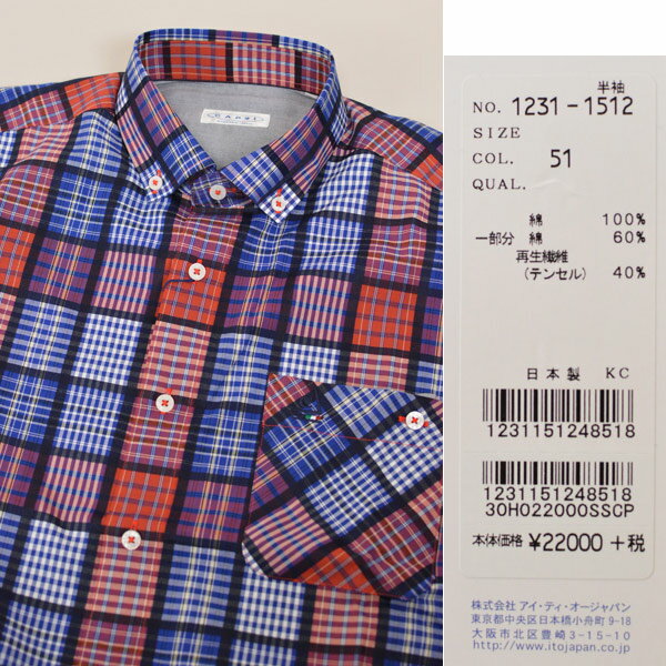 ■色柄 紺 赤 ■素材 綿100% ■サイズ(実測寸法cm) M:着丈 約72 バスト 約102 胴回り 約100 肩幅 約45 袖丈 約23 L:着丈 約74 バスト 約112 胴回り 約110 肩幅 約45 袖丈 約24 ■日本製 ●メーカー希望小売価格はメーカー商品タグに基づいて掲載しています